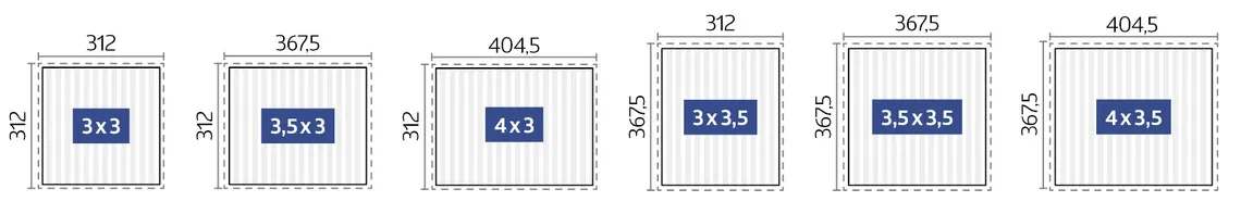 | 3 x 3,5 | 312 x 367,5 x 264 | 21,0 | 254,6 |